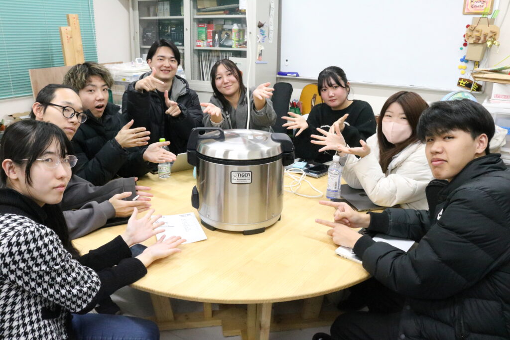 まず、巨大炊飯器(2升炊き)の開封式でした。さっそくご飯会をやるみたいです。